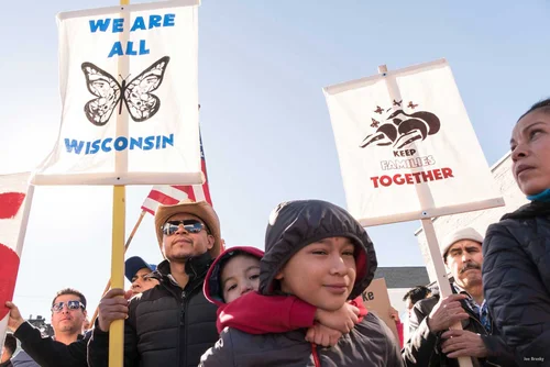 Voces de la Frontera. October 2021 action on Wisconsin Ave in front of Senator Tammy Baldwin's Milwaukee office.