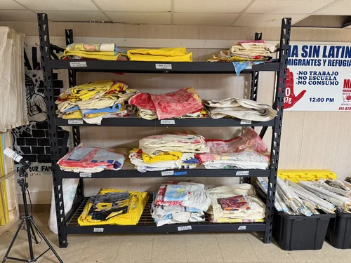 Voces marched for 10 days from Milwaukee to the State Capital Building in Madison in June of 2021 to push the democrats for citizenship. I screenprinted a series of nylon flags that were attached to PVC poles so that the flags would be light to carry during the march.